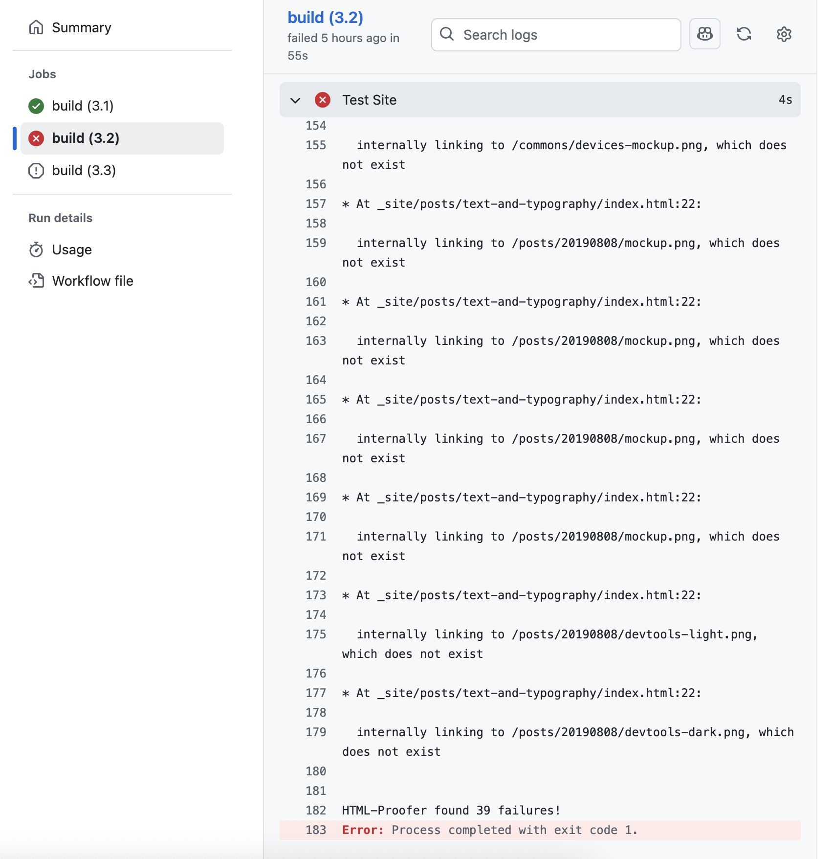 지난 번 만든 Chirpy의 config 설정을 하면서 사용하는 것, 안 하는 것을 분류하였는데, 업데이트 하고 보니 갑자기 ci workflow에서 다음과 같은 에러가 발생했습니다.